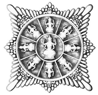 Lambang ini membentuk diagram kosmologi yang disinari jurai Matahari khas "Surya Majapahit", atau lingkaran Matahari dengan bentuk jurai sinar yang khas.